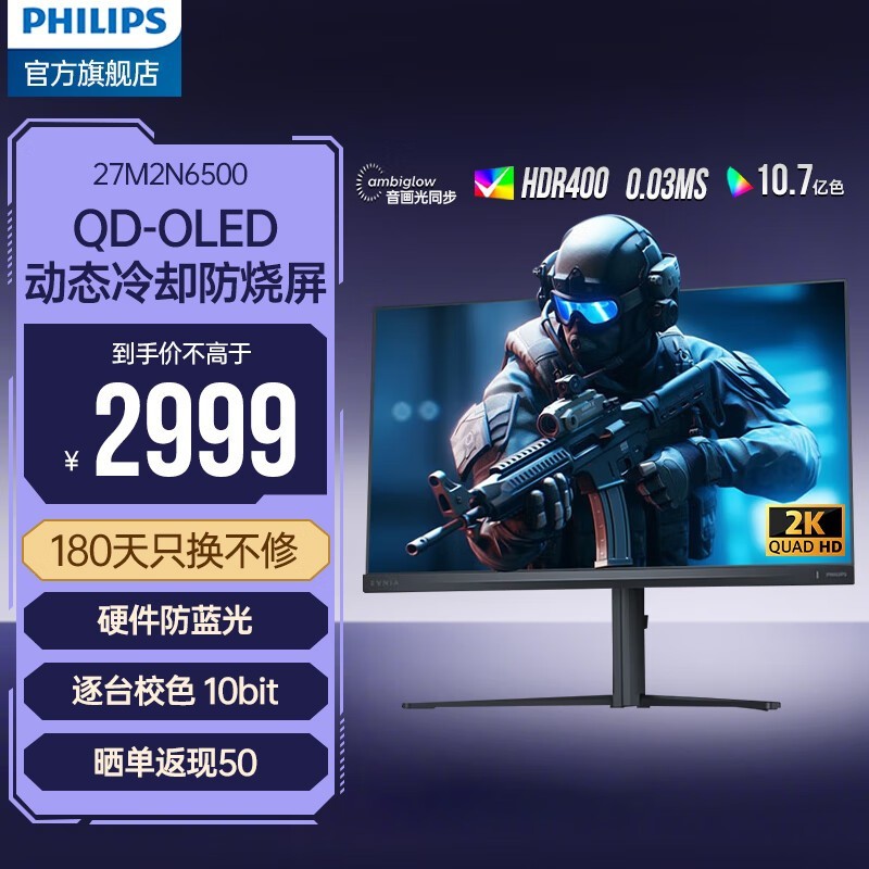 飞利浦27英寸2K 240Hz显示器京东优惠500元