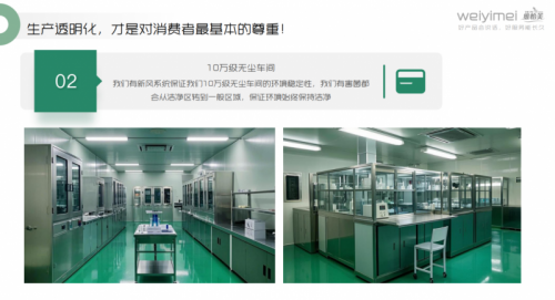 在生产环境上,维怡美工厂拥有10万级洁净生产车间,洁净度达到手术室标准,确保产品在生产过程中不受污染。此外,工厂引进了全自动罐装机器,不仅提高了生产效率,还进一步保证了产品的一致性和安全性。