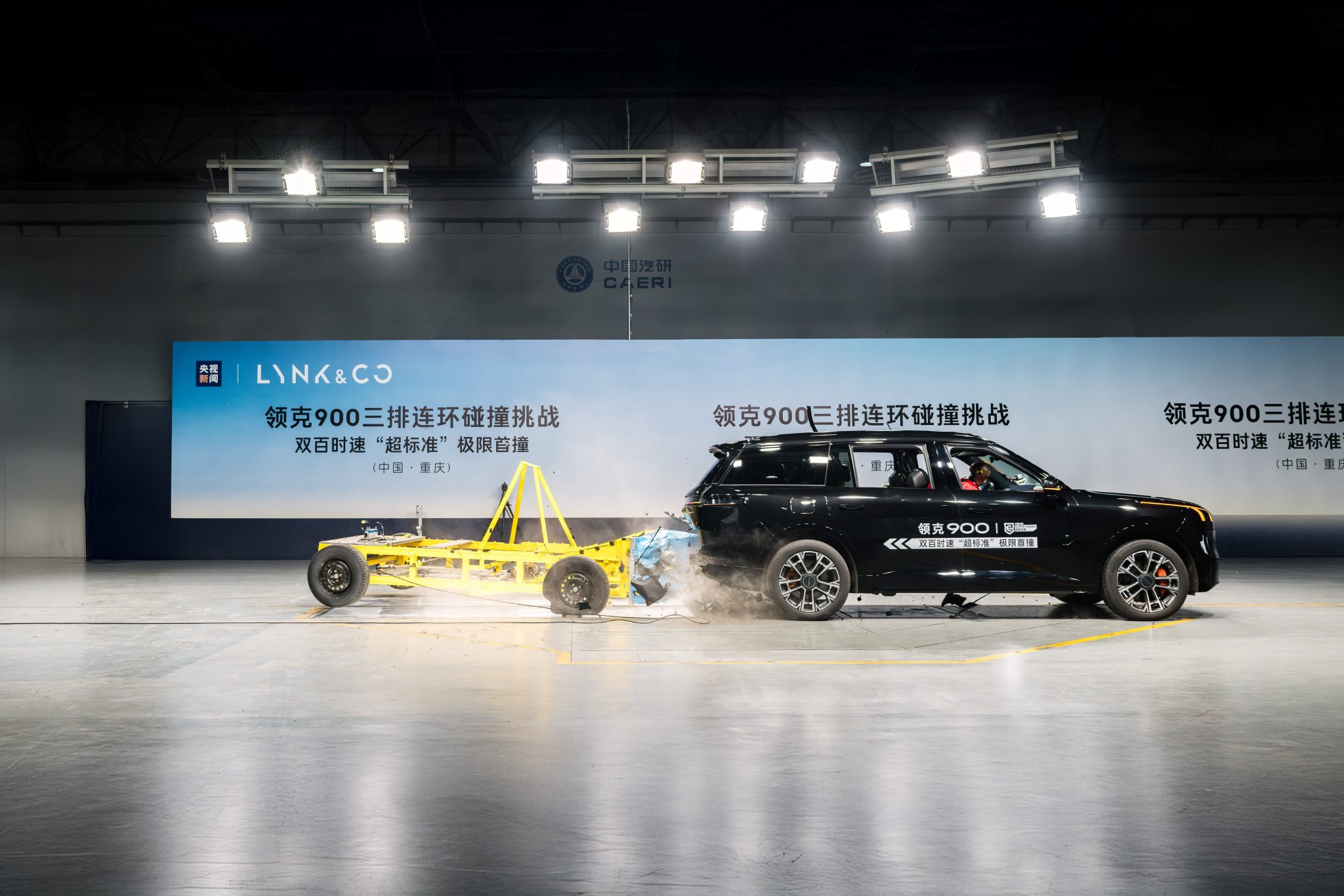 领克900完成三排连环碰撞极限挑战——中国首次双百时速“超标准”连环碰撞测试超纲测试背后的安全革命:速度、能量、场景三重突破