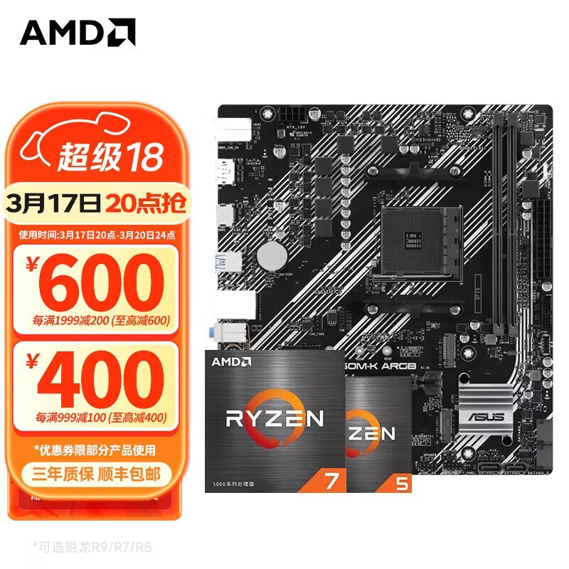 华硕B550M-K主板搭R7 5700X散片套装京东好价1179元