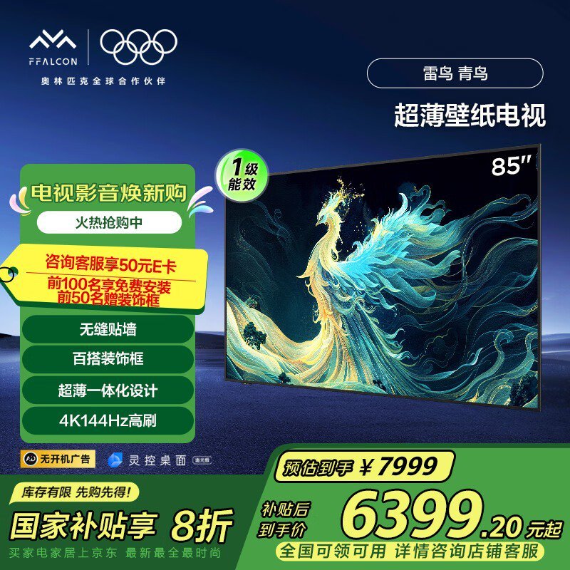 雷鸟85S585C Slim 85英寸电视优惠低至6373元