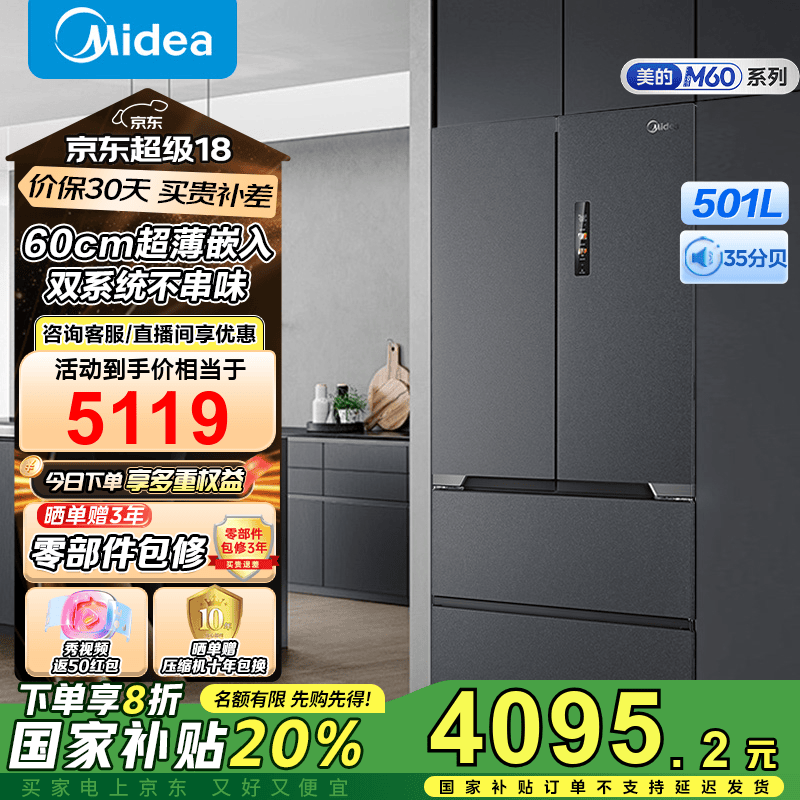 美的M60系列云朵冰箱京东促销优惠多多