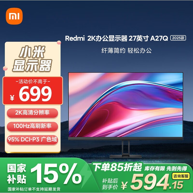 红米A27Q显示器京东特惠仅591元享多重好礼