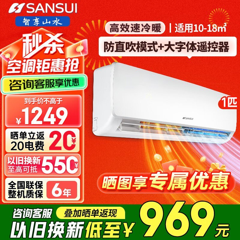 山水1匹壁挂空调,原价1449现969