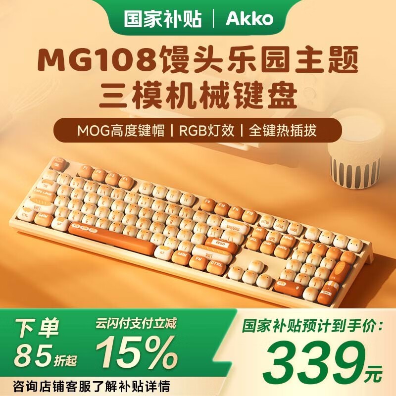 Akko MG108B 馒头乐园机械键盘三模RGB热插拔客制化