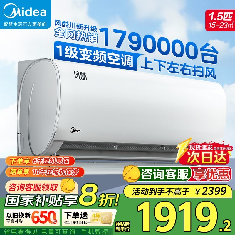 美的风酷二代升级版空调,低至1765元