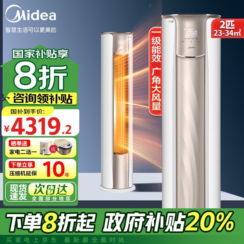 美的2匹立式柜机空调锐静Ⅱ系列一级能效变频省电舒适静谧
