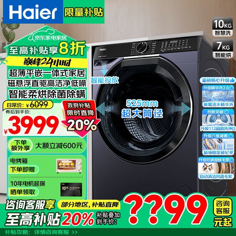 海尔云溪洗烘一体机10公斤大容量仅2749元