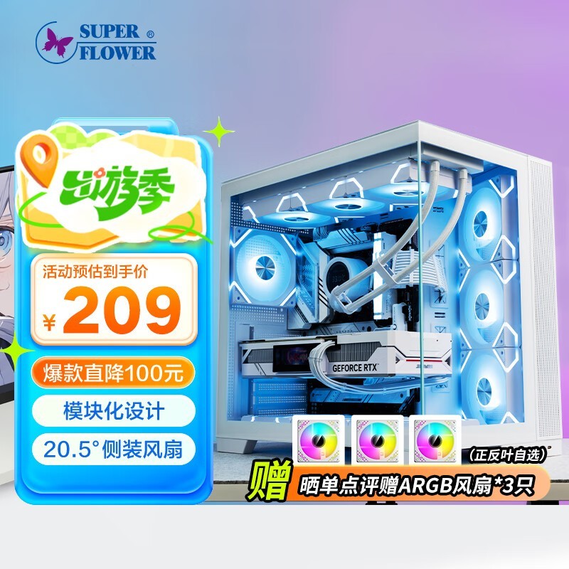 振华闪蝶白色海景房台式机电脑主机箱促销