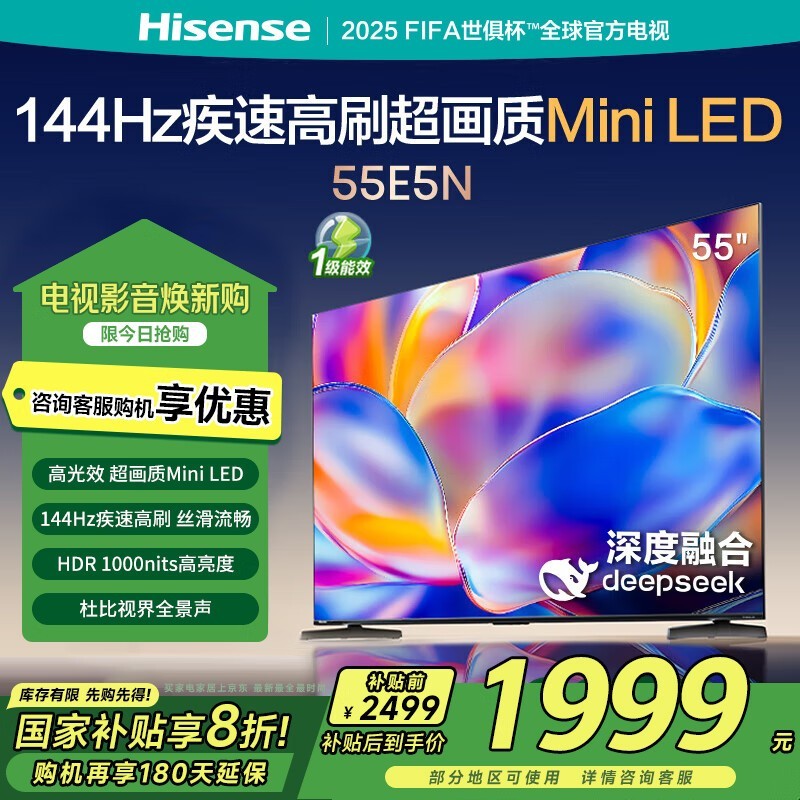 海信55E5N 55英寸4K电视 到手价1813元