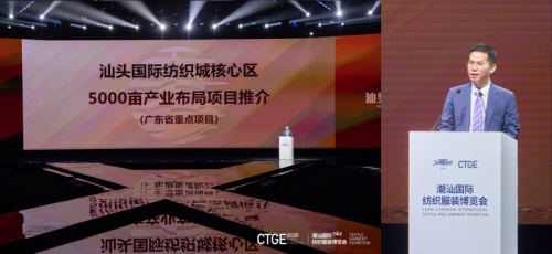 会上,汕头市纺织服装产业协会常务副会长马庆宣作汕头国际纺织城5,000亩产业布局项目推介,表示这里将形成集技术研发、生产制造、产品展销、国内外销售、智慧物流云仓等功能于一体的全球纺织产业枢纽中心,引领全球纺织产业的发展潮流,成为全国产业升级的示范标杆和全球纺织产业的新高地。