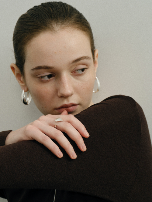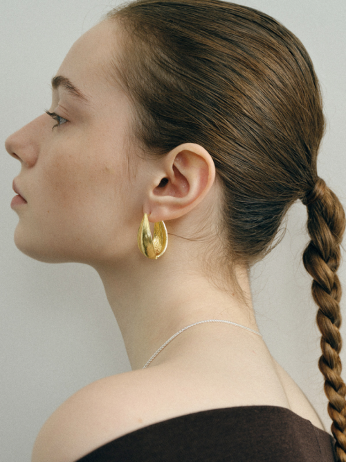 双面果荚肌理复古耳环,两片相对的果荚,包裹着耳垂从各个角度,都能看到两种金属肌理的碰撞。果英环扣的结构采用了“铰链扣”无需耳堵,轻松佩戴金银拼色的设计,可以随心将金色或者银色作为正面为搭配创造更多可能。