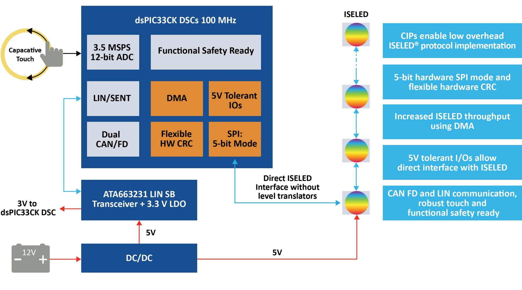 将单个 dsPIC33CK DSC 用于 ISELED 应用,降低系统成本