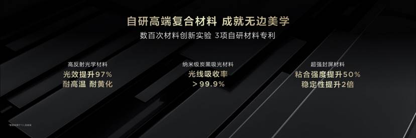 有了这三大关键创新材料的加持,电视在显示画面时,能够达到屏幕边缘无黑边的观看效果,即使边缘的光线均匀性也十分优秀,值得一提的是,在拥有如此极致的外观同时,整机稳定性也大幅提升,真正做到沉浸感和可靠性双重跃升。