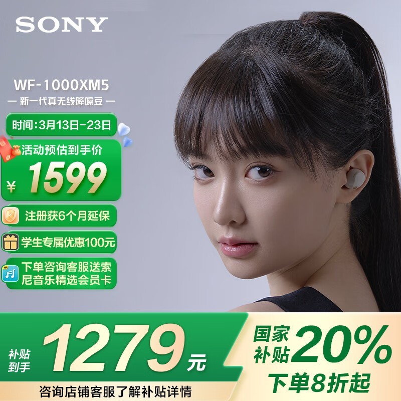 索尼WF-1000XM5真无线降噪耳机铂金银款京东好价促销