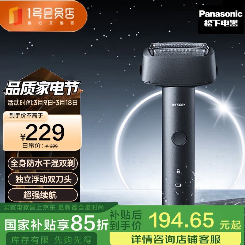 松下ES - RM31 - K405黑色剃须刀促销价169元