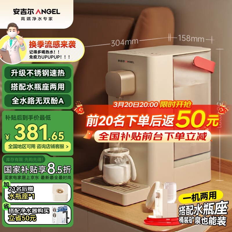 ANGEL即热式饮水机京东优惠价313元