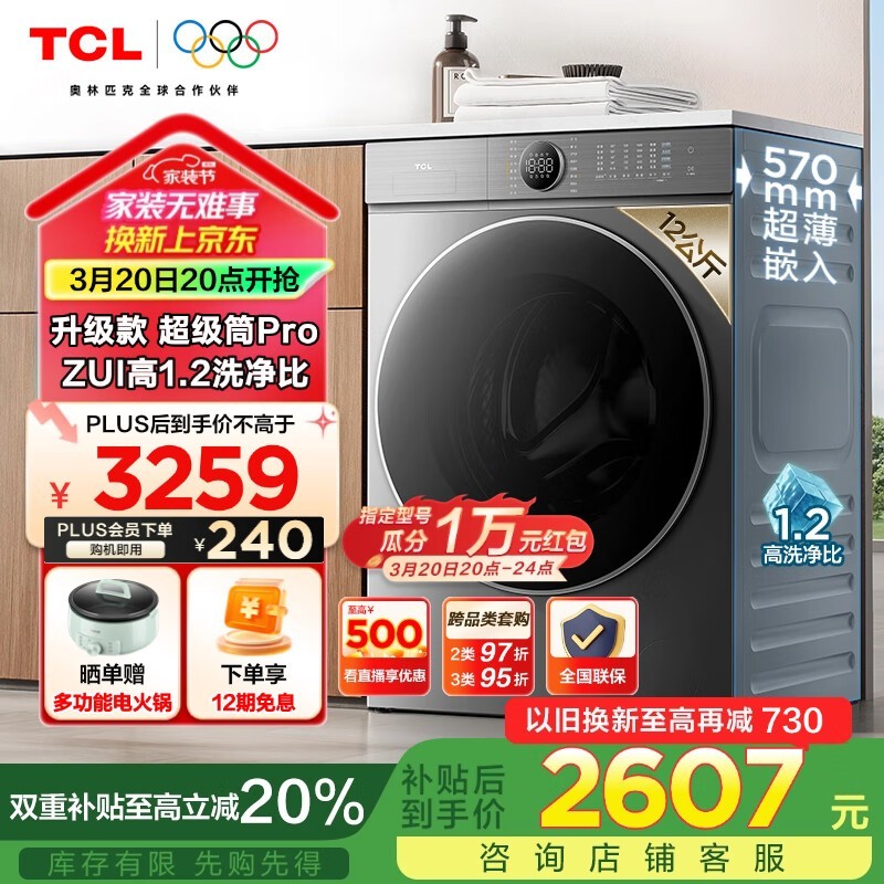 TCL T7H Pro洗烘一体机大容量洗衣机家用滚筒洗衣机