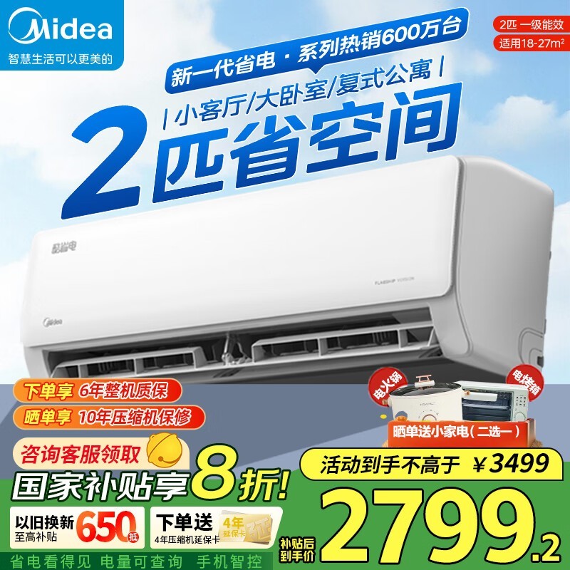 美的酷省电2匹空调挂机,京东优惠价2504元