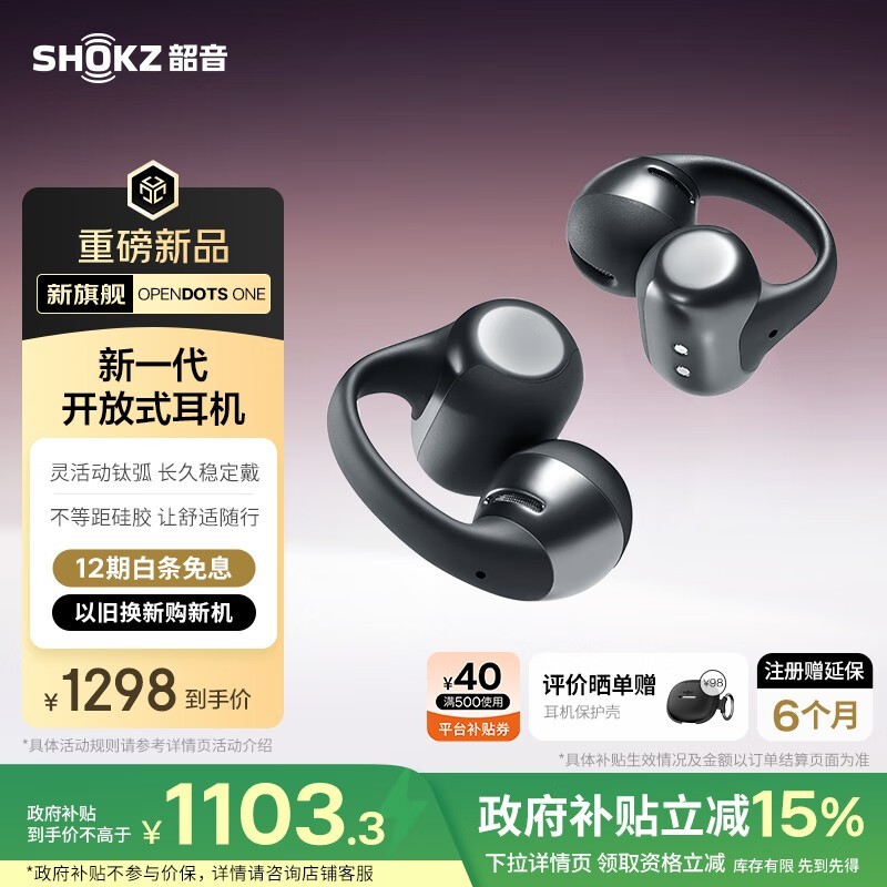 韶音OpenDots ONE黑色耳夹式耳机超值优惠