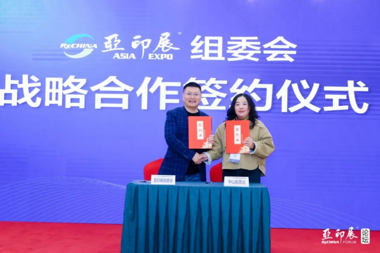 紧接着,在亚印展战略合作签约仪式中,亚印展组委会分别与珠海市进出口商会复印机技术及耗材分会,中山市易得美工贸,深圳市办公设备租赁行业协会,粤桂办公耗材组织,中山市办公耗材行业协会,天威集团上海阿格感光材料、中山信创时代科技发展、中山市拓思达电子科技、广州市多能多复印耗材制造、中山市高尔乐塑胶制品、中山丰泽包装制品、中山澳兴发科技、中山市超印办公耗材等单位签订战略合作协议,携手共促行业发展。