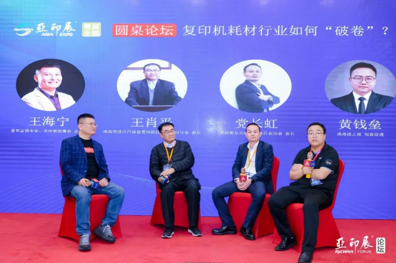 主题演讲后,王海宁主持精彩的圆桌论坛,王肖平、党长虹、黄钱垒作为互动嘉宾,围绕复印机耗材行业如何“破卷”各抒己见,从技术创新、市场拓展、品牌建设等角度提出见解与建议,为行业企业在激烈竞争中提供破局思路。