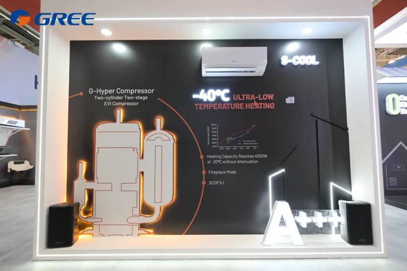 欧洲能源价格连续三年高位震荡,叠加2024年冬季破纪录寒潮,传统燃气供暖成本激增。为满足欧洲家庭"用得起、供得稳"的采暖需求,格力重点推出搭载自主研发的G-Hyper双级压缩机S-Cool分体机,以及搭载G-Storm超高速压缩机的Airy分体机等超低温热泵产品。