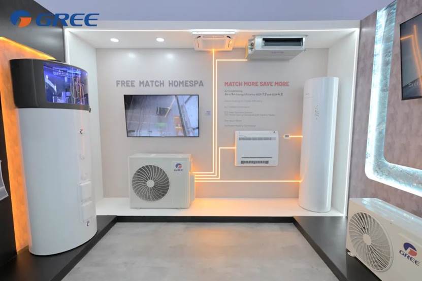 主打“搭配越多,节省更多”的理念,格力家用Homespa自由配为欧洲家庭提供一站式的空气及制热水解决方案。机组可以自由适配4台空调和1台热水器,通过在空调上实现热回收,将空调制冷产生的废热用于制热水,减少制热水耗电,能效高达A+,高效节能。