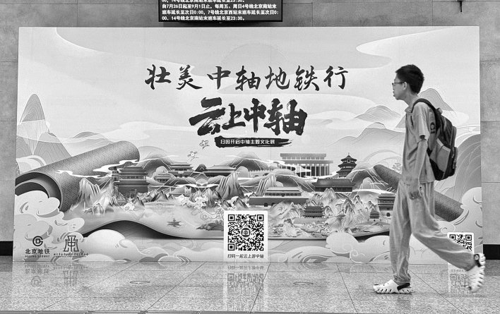 7月2日,在北京地铁8号线鼓楼大街站,北京市地铁运营有限公司等举办“壮美中轴地铁行”主题活动。该活动以与“北京中轴线”相互呼应的地铁8号线为载体,宣传推广“北京中轴线”文化。当天,乘客可以参与盖地铁特色印章活动,也可以扫展板上的“云上中轴”二维码,了解更多中轴故事。