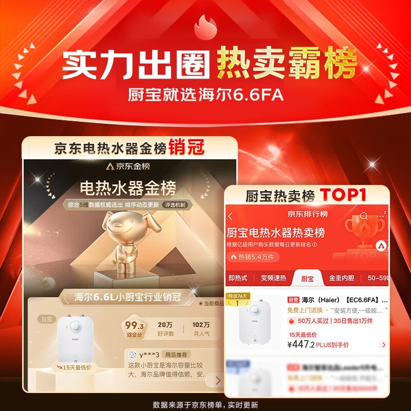 海尔6.6L上出水厨宝 京东8折仅需359元