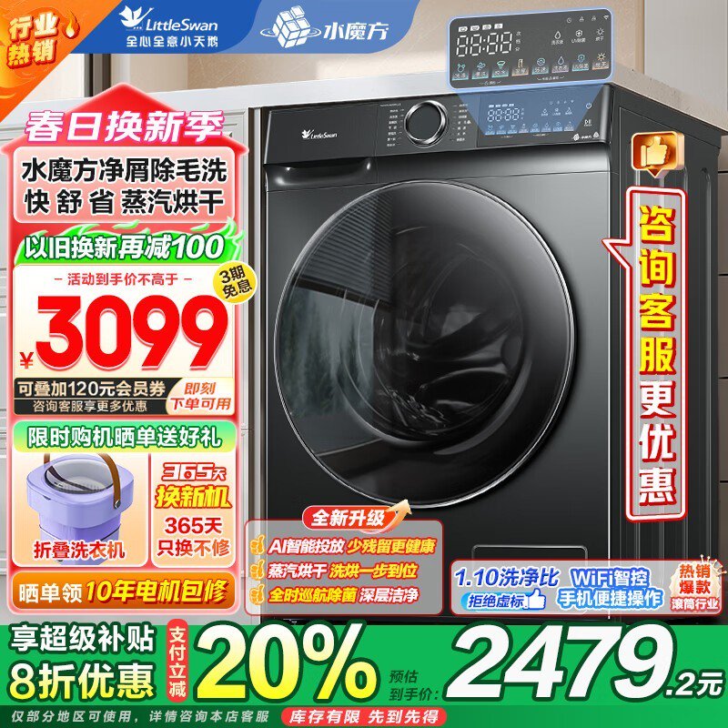 小天鹅水魔方升级款洗烘一体机10KG大容量仅2163元