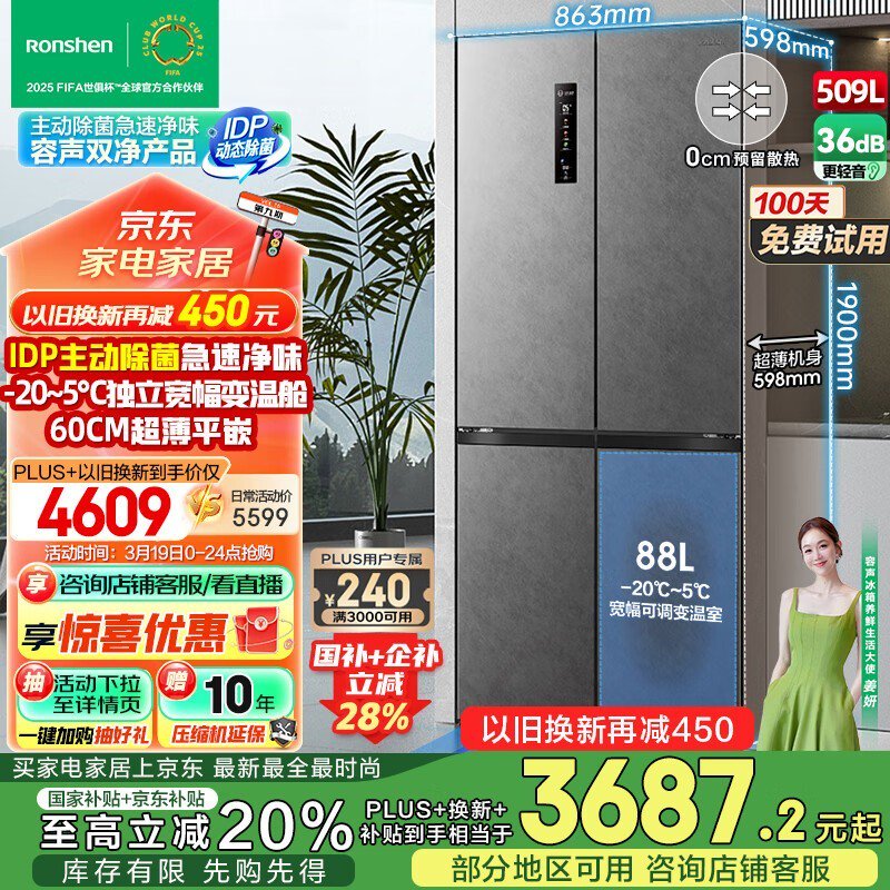 容声509升十字对开四开门冰箱零嵌设计促销