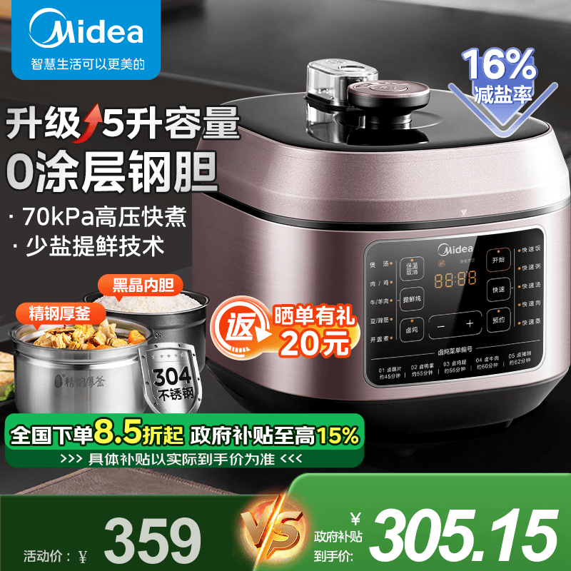 美的电压力锅MY - C540,5L,到手价268元