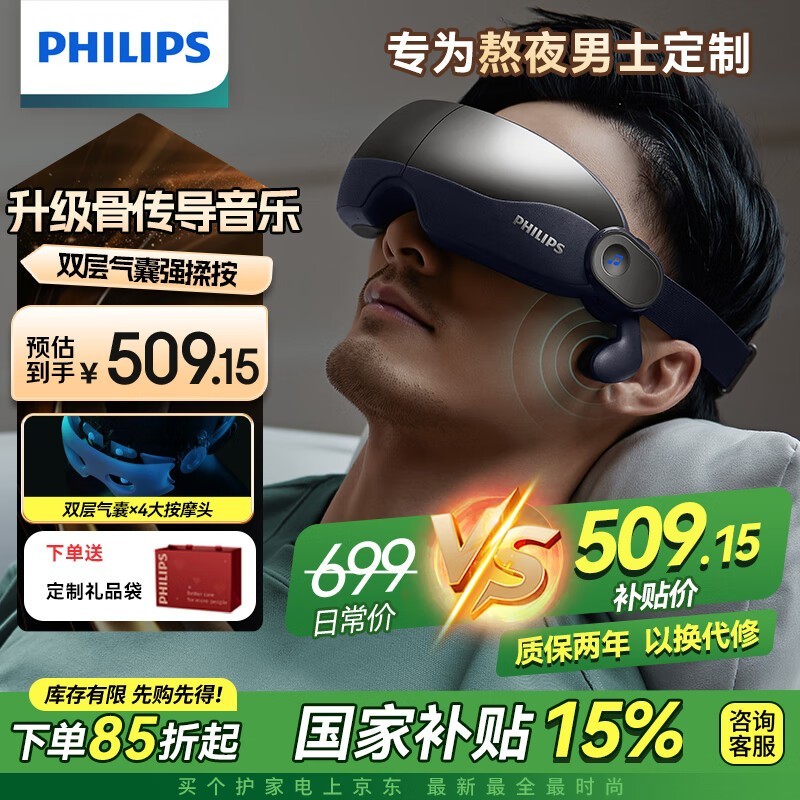 飞利浦眼部按摩仪7102E京东秒杀346元享SPA级护眼体验
