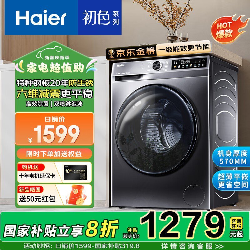 海尔XQG100 - 507S洗衣机,到手价1148元