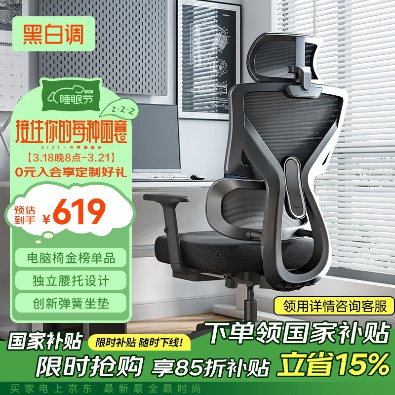 黑白调P5双背款人体工学椅京东促销低至486元