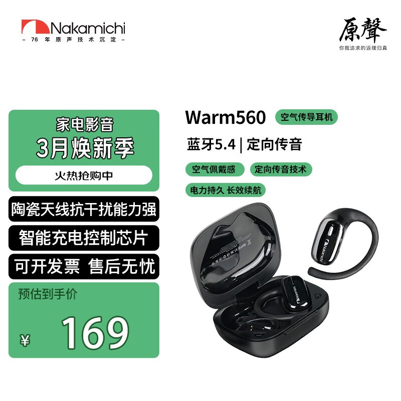 中道蓝牙耳机OWS空气传导挂耳式立体声环绕音效