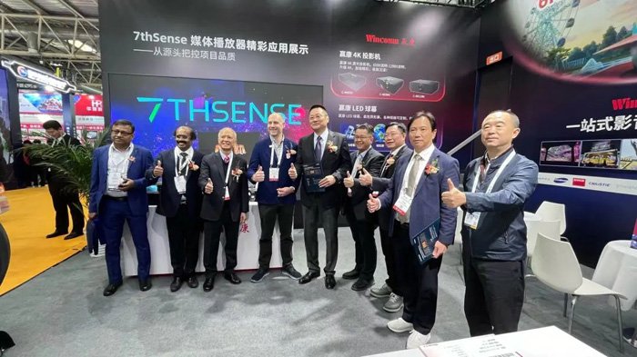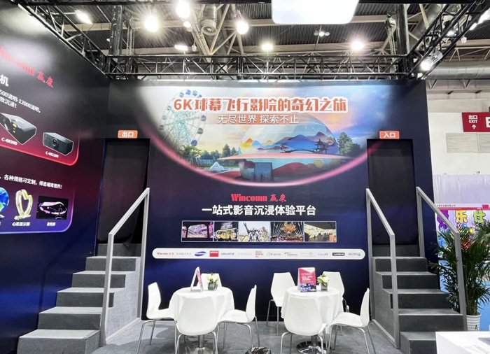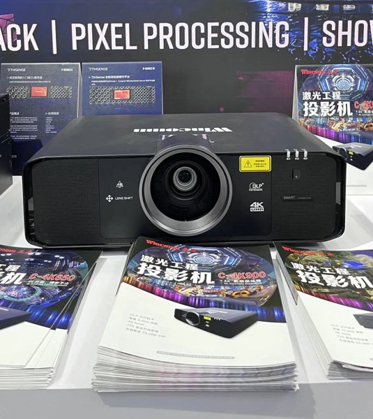 赢康科技新推出的三款4K分辨率工程激光投影机,亮相展位。它们分别是,亮度为6500流明的C-4K650,亮度为9000流明的C-4K900和亮度为12000流明的C-4K1200。