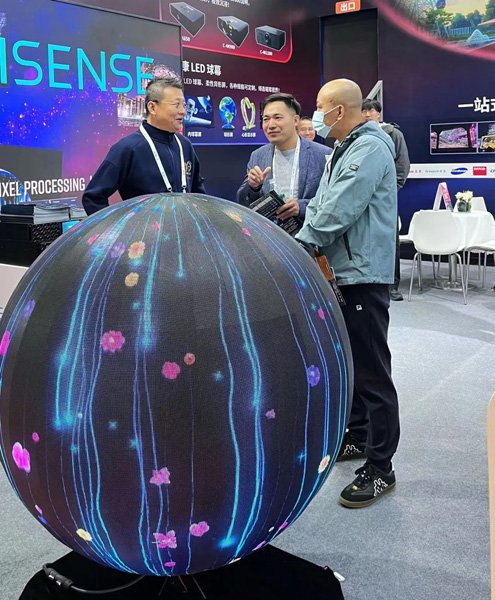 展位上还展出了赢康LED球形屏,它具有各种规格,且可定制的特点。