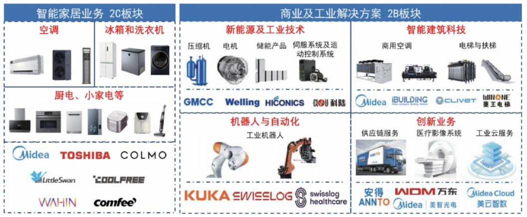 资料来源:iFinD除了我们熟知的C端家电业务外,美的还覆盖了新能源&工业技术、智能建筑科技、机器人与自动化、其他创新业务的B端商业及工业解决方案等领域,海外收入在整体收入中的比重达到了42%左右。