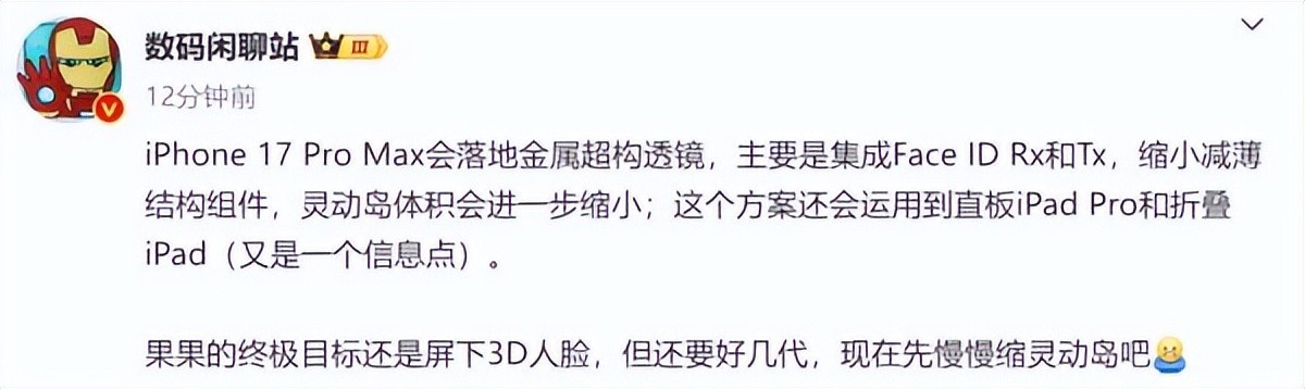 尽管灵动岛的减小是一个显著的进步,但苹果的追求并未止步于此。据内部消息,苹果的最终目标是实现屏下3D人脸识别技术。这一技术将彻底消除灵动岛,使屏幕的完整性得到最大程度的保留,为用户带来更为沉浸式的使用体验。然而,屏下3D人脸识别技术的实现还需时间,预计要经过数代产品的迭代才能正式投入市场。