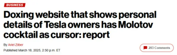 据美国媒体最新报道,除了打砸烧以外,甚至还有一个叫做Dogequest的网站公布了全美特斯拉车主的个人信息。