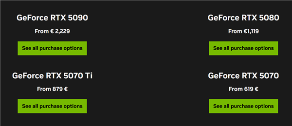 只有RTX 5070 Ti保持不变,还是879欧元。