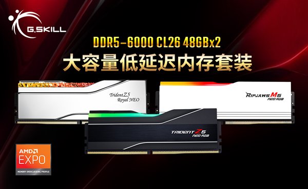 快科技3月20日消息,芝奇宣布,正式推出全球首款DDR5-6000 CL26 96GB内存套装,兼具大容量、低延迟,包括皇家戟EXPO系列、焰锋戟RGB系列、烈焰枪RGB系列。