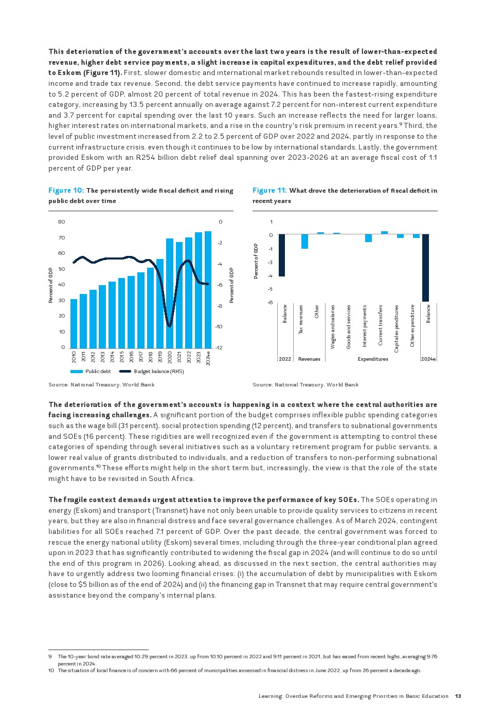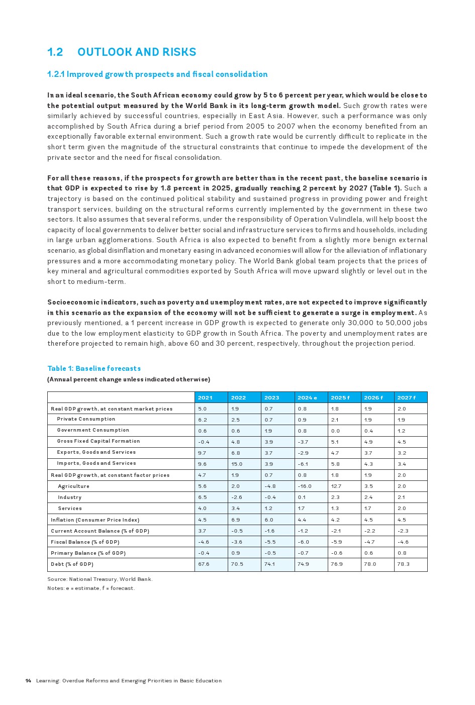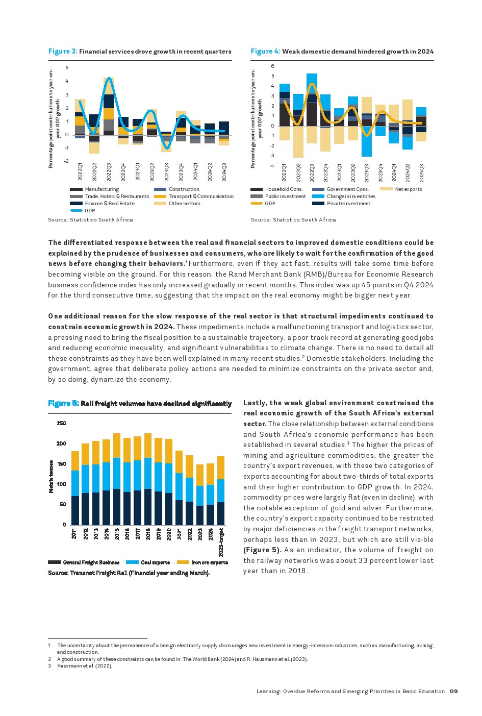 2024年,南非经济继续沿着缓慢且脆弱的包容性增长轨迹前进,并实现近年来最高的财政赤字(除2020年外)。尽管2024年6月成功的政治过渡带来了乐观情绪,且自3月以来没有发生电力中断,但实体经济仍处于缓慢复苏的道路上。好消息来自金融部门(通货膨胀和利率逐渐下降),以及外部部门(国际储备水平略有上升),但政府账户继续恶化。尽管如此,2024年国内生产总值(GDP)仅增长了约0.8%,略好于2023年,但显著低于世界银行对中等收入国家估计的平均GDP增长率4.1%。