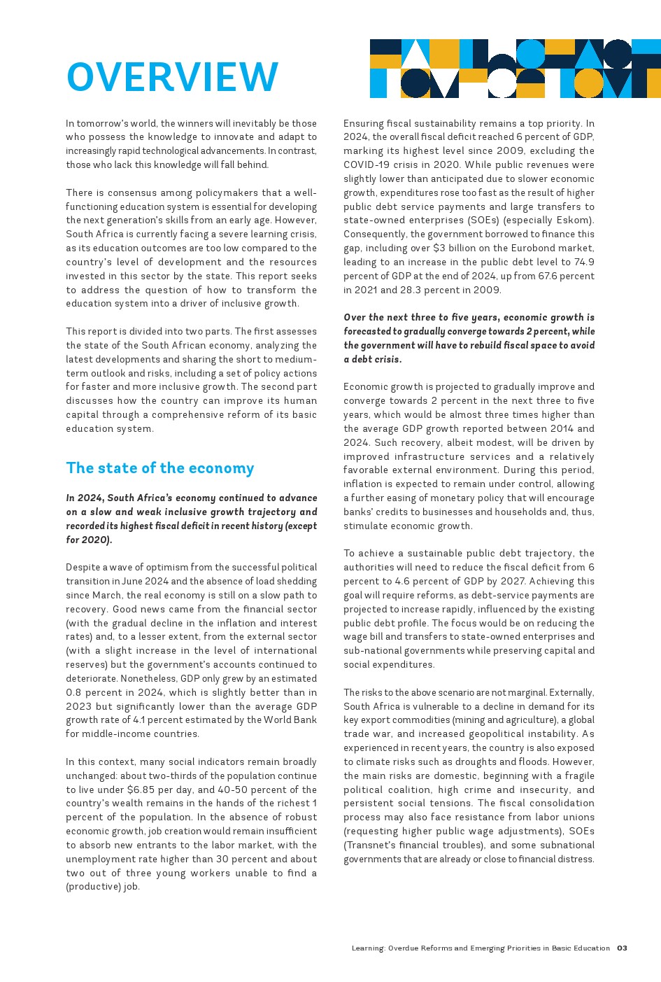 世界银行集团发布了“南非经济报告之基础教育”。这是“南非经济报告”的第二部分,讨论了该国通过全面改革基础教育系统来改善其人力资本。