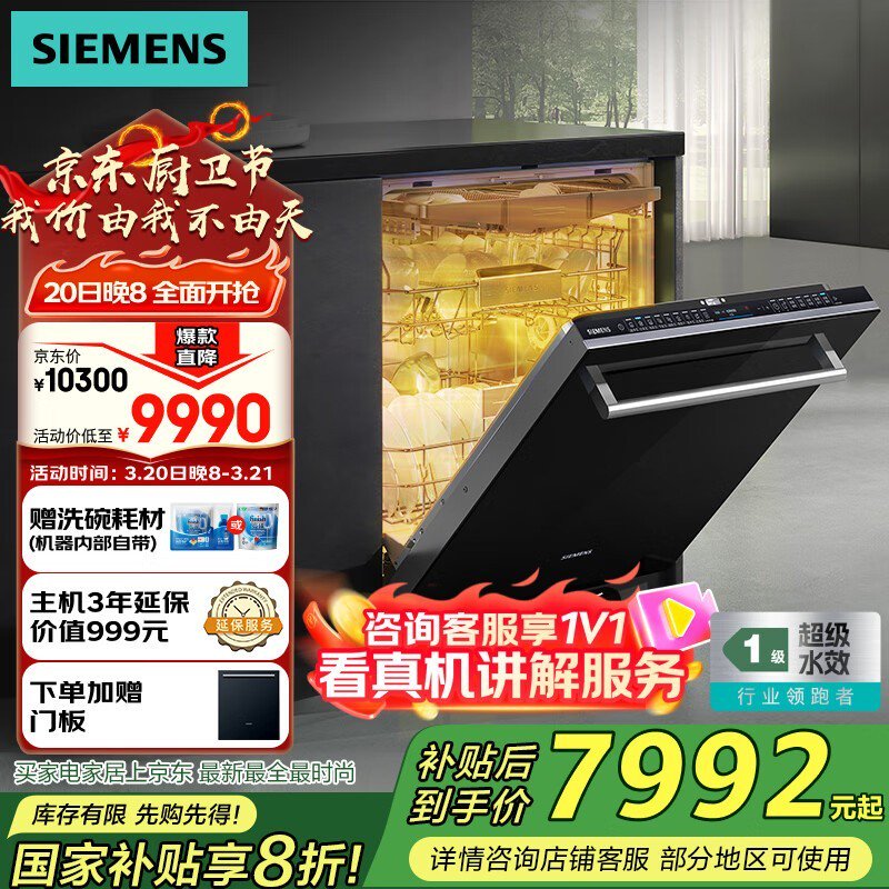 西门子SJ65ZX00MC嵌入式洗碗机黑色面板16套餐具大容量