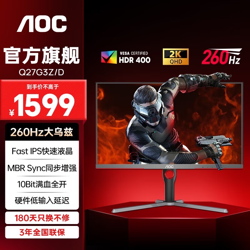 AOC 27英寸电竞显示器京东优惠价1599元