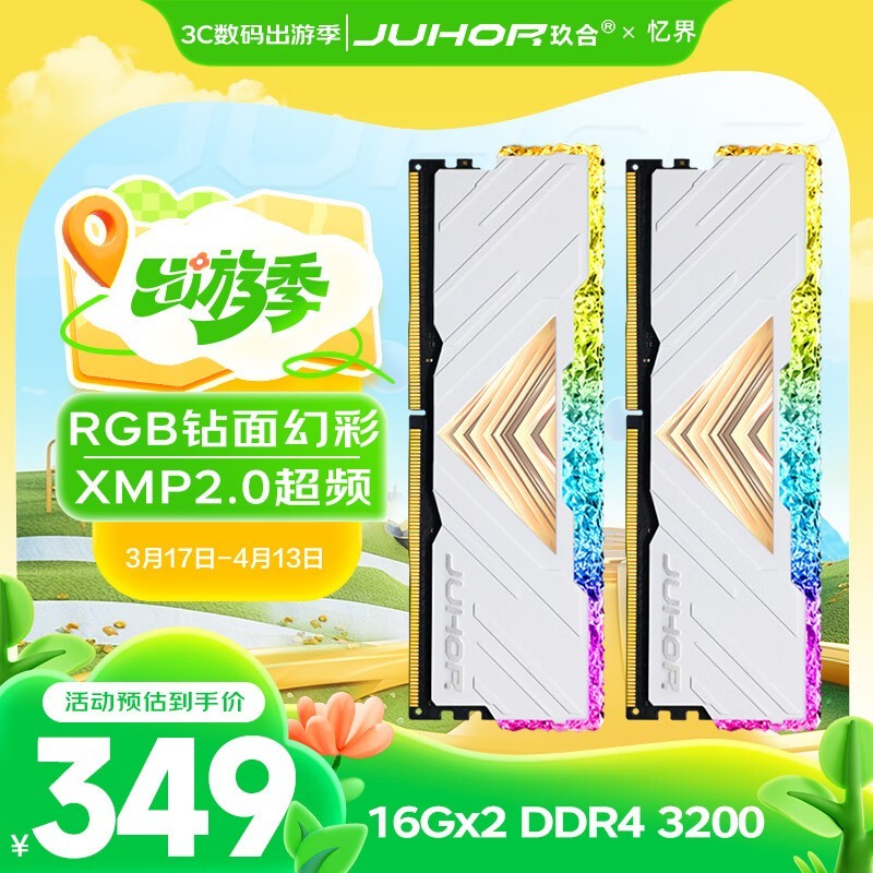 玖合32GB DDR4 3200台式机内存条RGB灯条仅349元