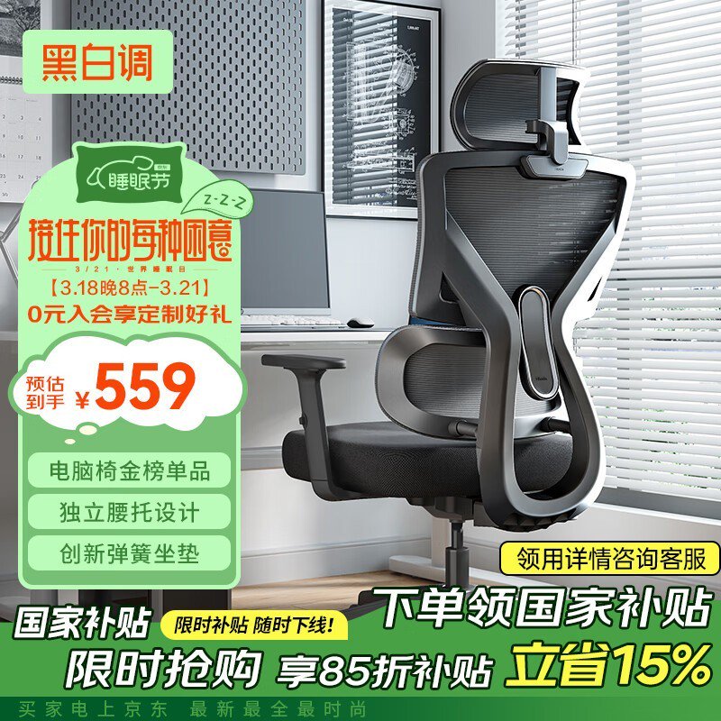 黑白调P5双背款人体工学椅419元享云端坐感体验
